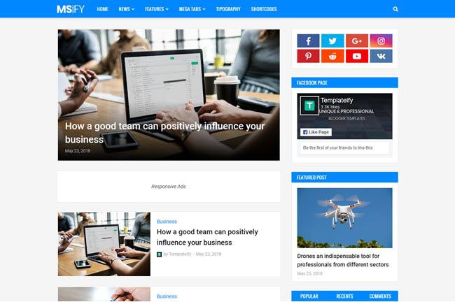 Msify is a free professional blogger template, it is fully customizable so you can develop your own unique design.