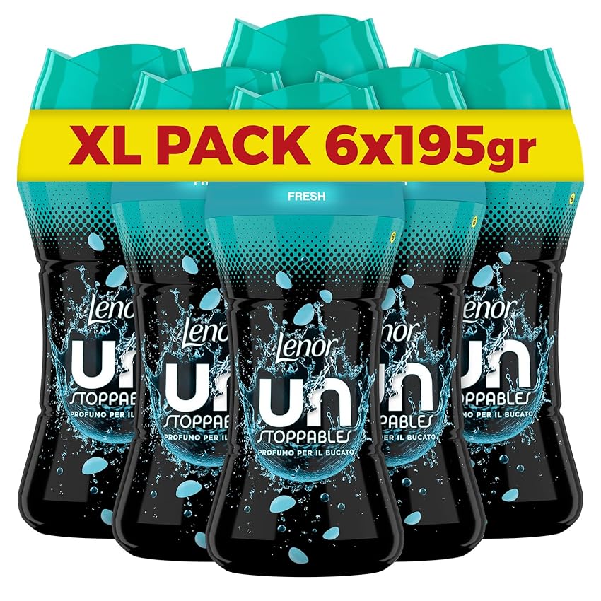 Lenor Profumatore Bucato Lavatrice Perle Profumate, Unstoppables Fresh, Maxi Formato 6 x 195g, Intensificatore Di Profumo